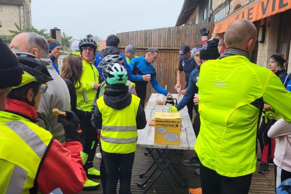Une mobilisation unique au monde par son ampleur. Le Téléthon c'est une mobilisation exceptionnelle ! Un élan de solidarité unique de dizaines de participants qui ont couru pour cette bonne cause en passant de village en village récupérer des dons. Pirajoux a reçu ces bones âmes comme il se doit.